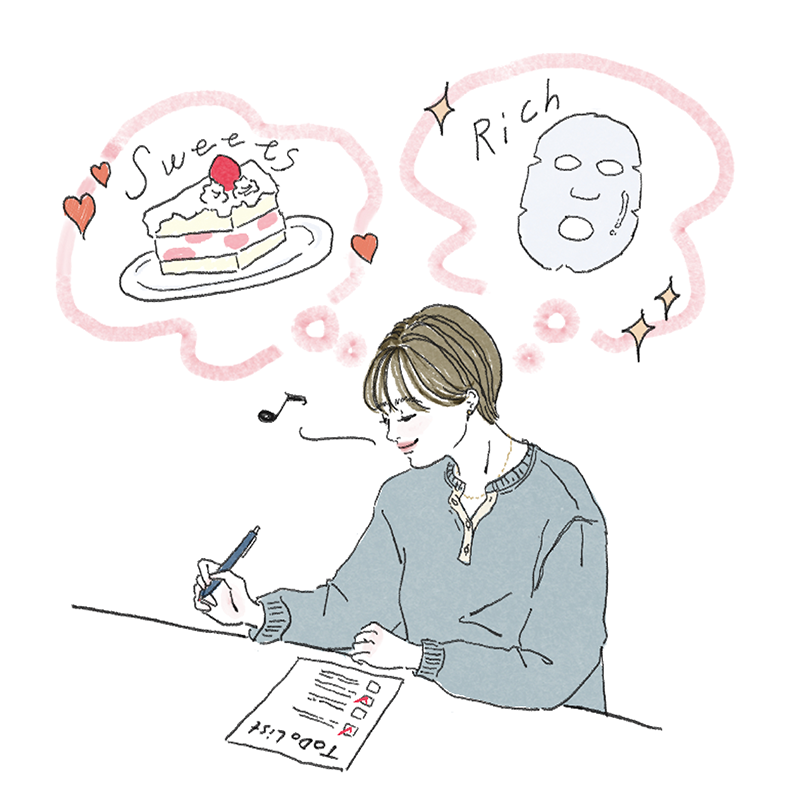 清水私の場合だと、友達と話す、贅沢なシートマスクを使う、お気に入りの香りに包まれてゴロゴロする、などでしょうか。