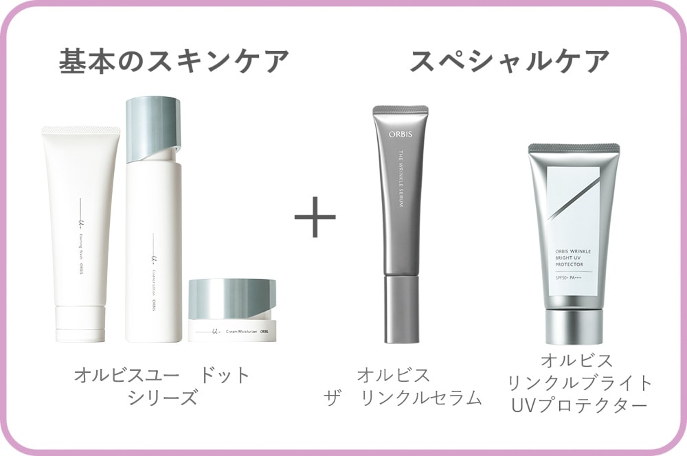 ハリの低下や乾燥も気になってきたので、エイジングケア*1も叶えられるオルビスユー ドットシリーズを愛用中。目立つシワはまだ少ないけど、細かいシワが顔全体に潜んでいる気がして、大ジワになる前になんとかしたい!という想いで、オルビス リンクルシリーズを毎日使っています。