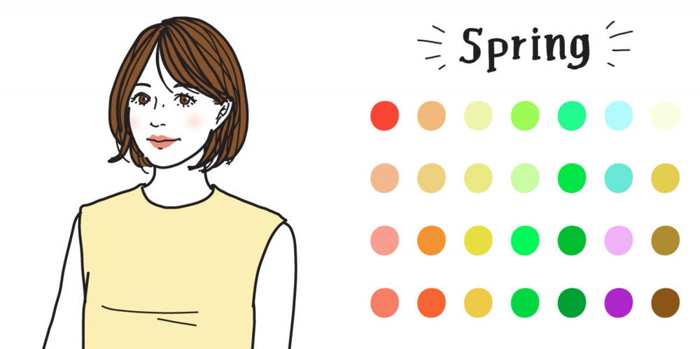 明るく若々しい印象の春タイプさん。くすみのないクリアな色や、黄味がかった明るい色が特に似合います。鮮やかなオレンジや赤を取り入れるときはシアーな質感のものを選ぶのがおすすめ!派手になりすぎずうるおいと血色感をプラスできます。