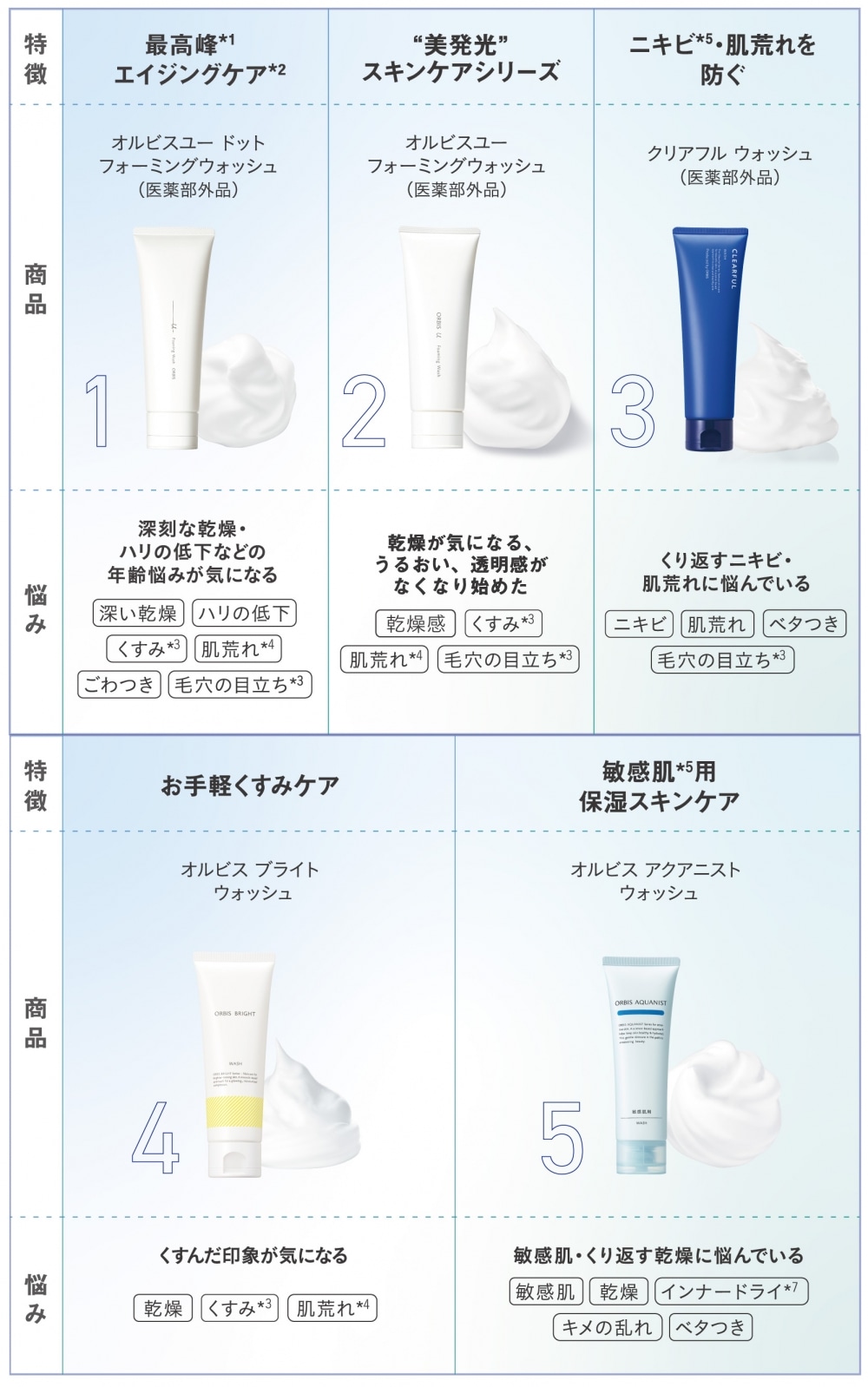 ぴったりのアイテムはどれ?あなたの肌悩みに応える洗顔料【5種比較】
