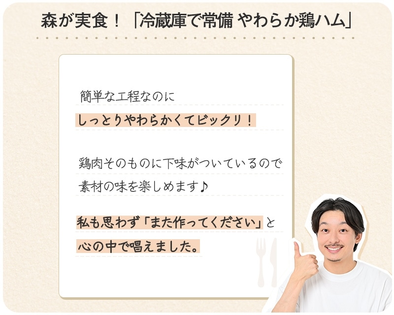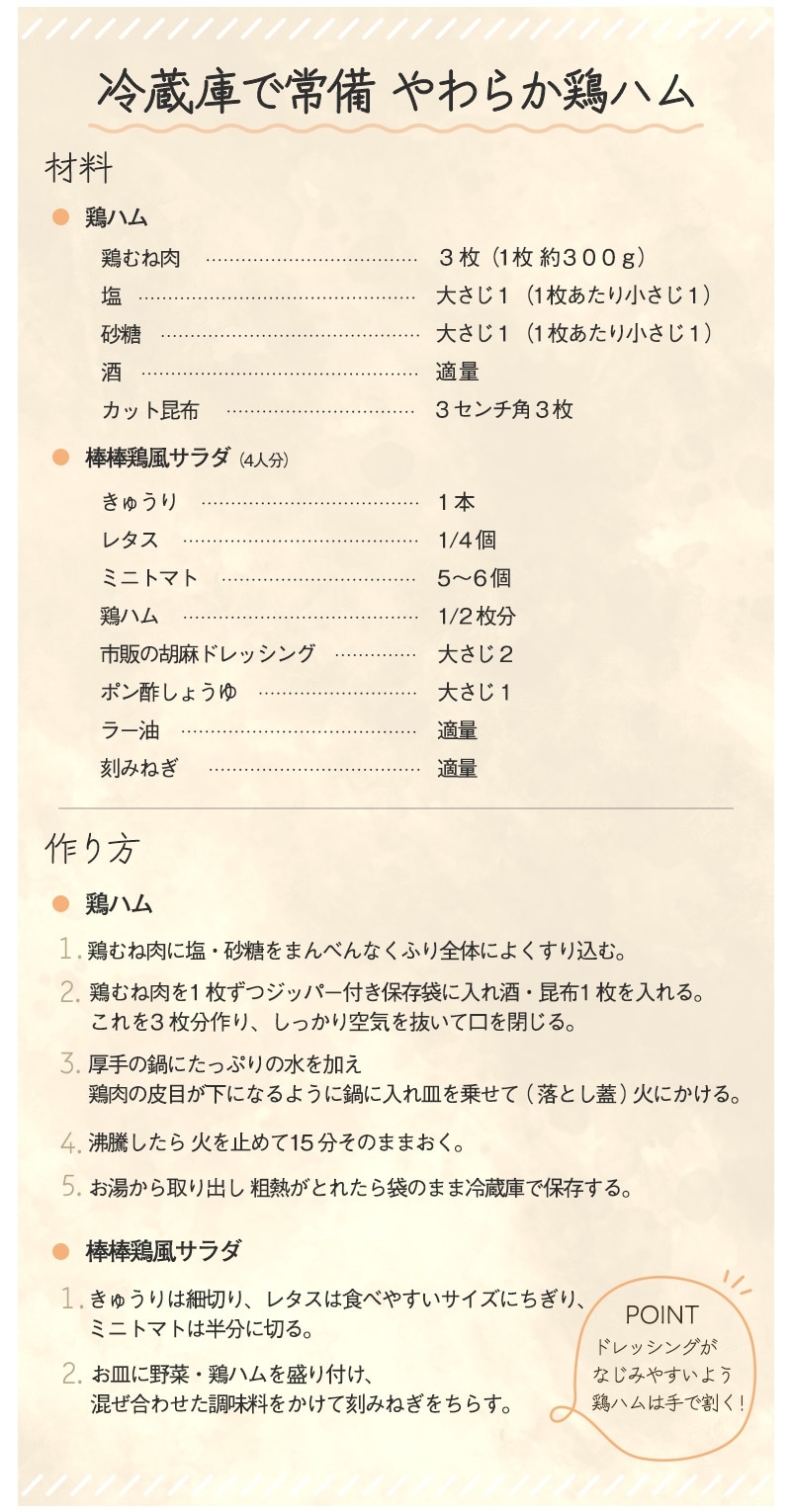 \「やわらか鶏ハム」の作り方はこちら!(2分30秒)/