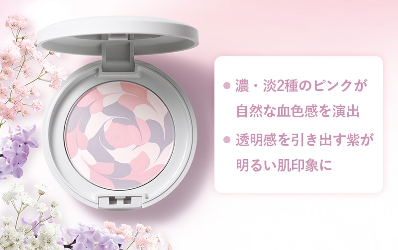 限定色「オンリーワンブーケ」(数量限定)は、大人のくすみがちな夕方肌をパッと晴らす、濃淡2種のピンクとパープルの3色の色設計。ふんわりとした血色感のあるセミマット肌に仕上がります。