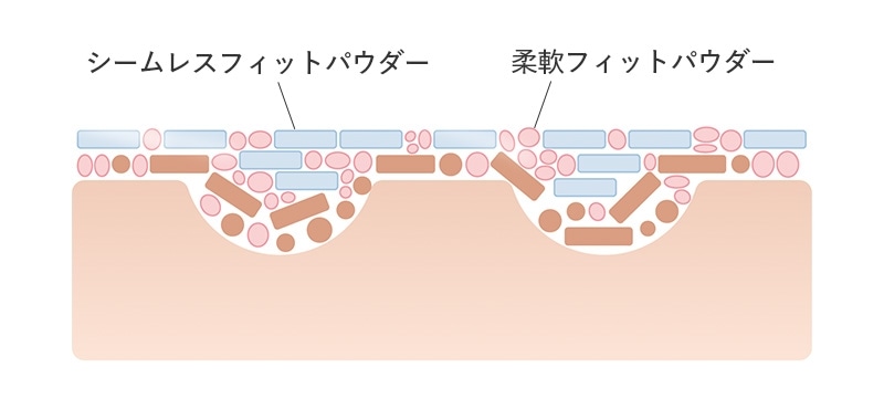 そこで今回のリニューアルでは、微細な隙間にもするりと入り込む「柔軟フィットパウダー*1」を新たに配合。肌表面をなめらかに整える「シームレスフィットパウダー*2」の2種のパウダーがダブルで働きかけ、毛穴の凹凸をしっかりカバーしながら、まるで朝メイクしたてのようなフレッシュな肌に整えてくれます。
