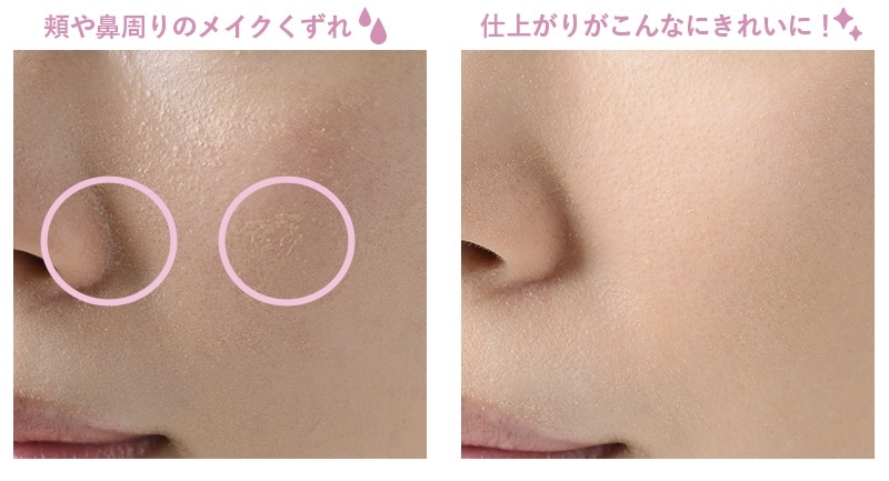 (左)メイクがくずれた状態 /(右)プレストパウダー(ルーセント)を使用した状態