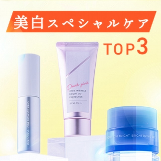*メラニンの蓄積を抑え、シミ・ソバカスを防ぐ(オルビス アドバンスド ブライトニング セラム)、メラニンの生成を抑え、シミ・ソバカスを防ぐ(オルビス リンクル ブライト UV プロテクター、オルビス オーバーナイト ブライトニング ジェル)