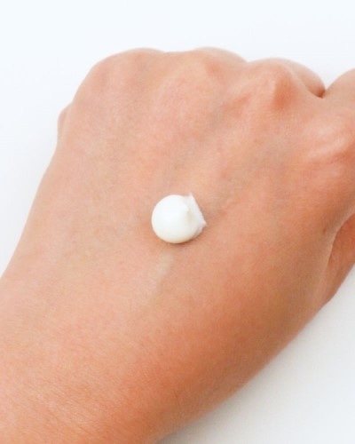 保湿液の後、手のひらに肌が吸い付くのを確認してから日焼け止めを塗布。スキンケアがなじむ前に重ねると、モロモロの原因になることがあります。