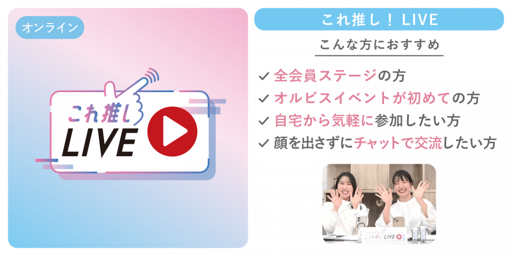 オルビスが今一番推したい商品をご紹介するLIVE配信です!新発売の商品や、隠れた名品、季節のおすすめなど、発見がたくさん♪どのイベントに参加しようか悩んだらまずはこれ!≪申し込み不要≫ですので、ふらっと参加してみてください!
