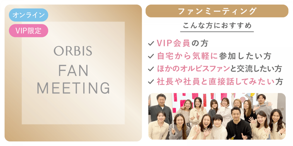 VIP会員のオルビスファンが一堂に会する、年末のビッグイベント!オフラインイベントだからこそ、チャットや画面を介して、全国のファンの皆さまと一緒に盛り上がることができます。
