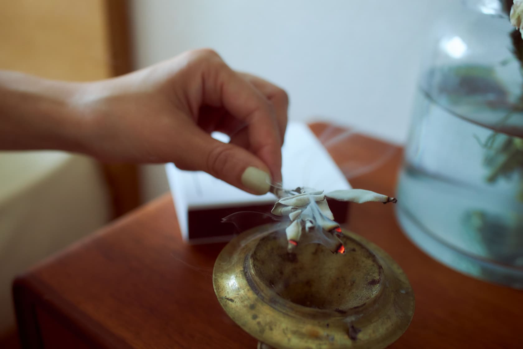 仕事から家に帰ってきたタイミングや、部屋のお掃除を終えたあと、窓を開けてホワイトセージを炊く。疲れた日こそ湯船にお湯を張り、日本酒とお塩を入れた「お清めお風呂」に入って身体を浄化する。 これを習慣づけるようになってからは、以前よりもオンオフの切り替えが上手にできるようになりました。