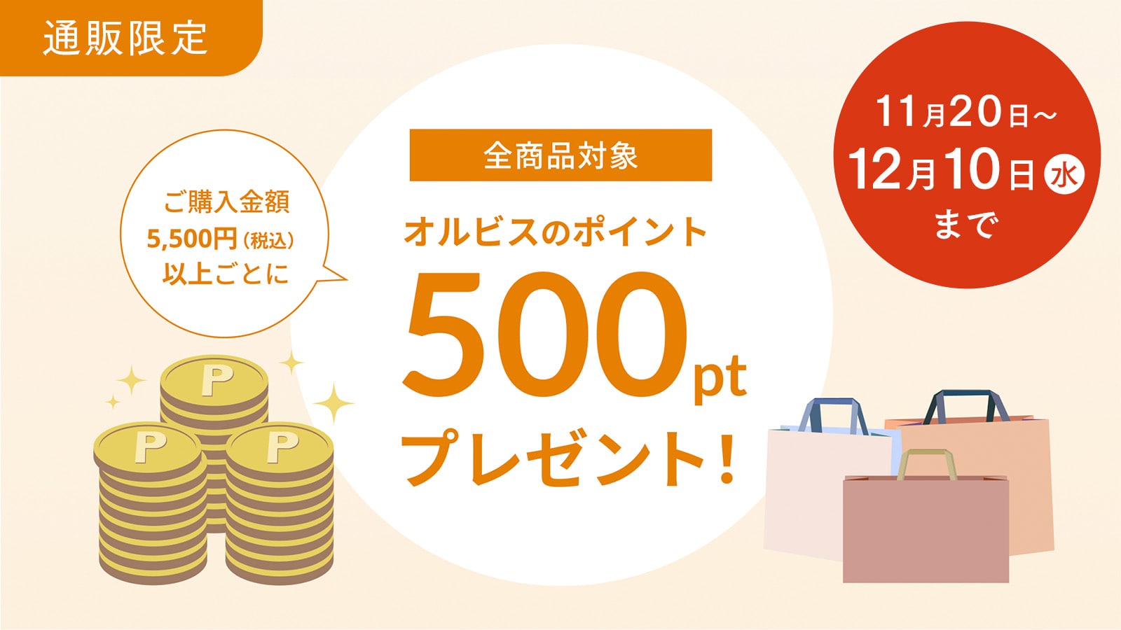 期間中、1回のご注文金額が5,500円(税込)以上*ごとに、次回のお買い物から使える500ptをプレゼント