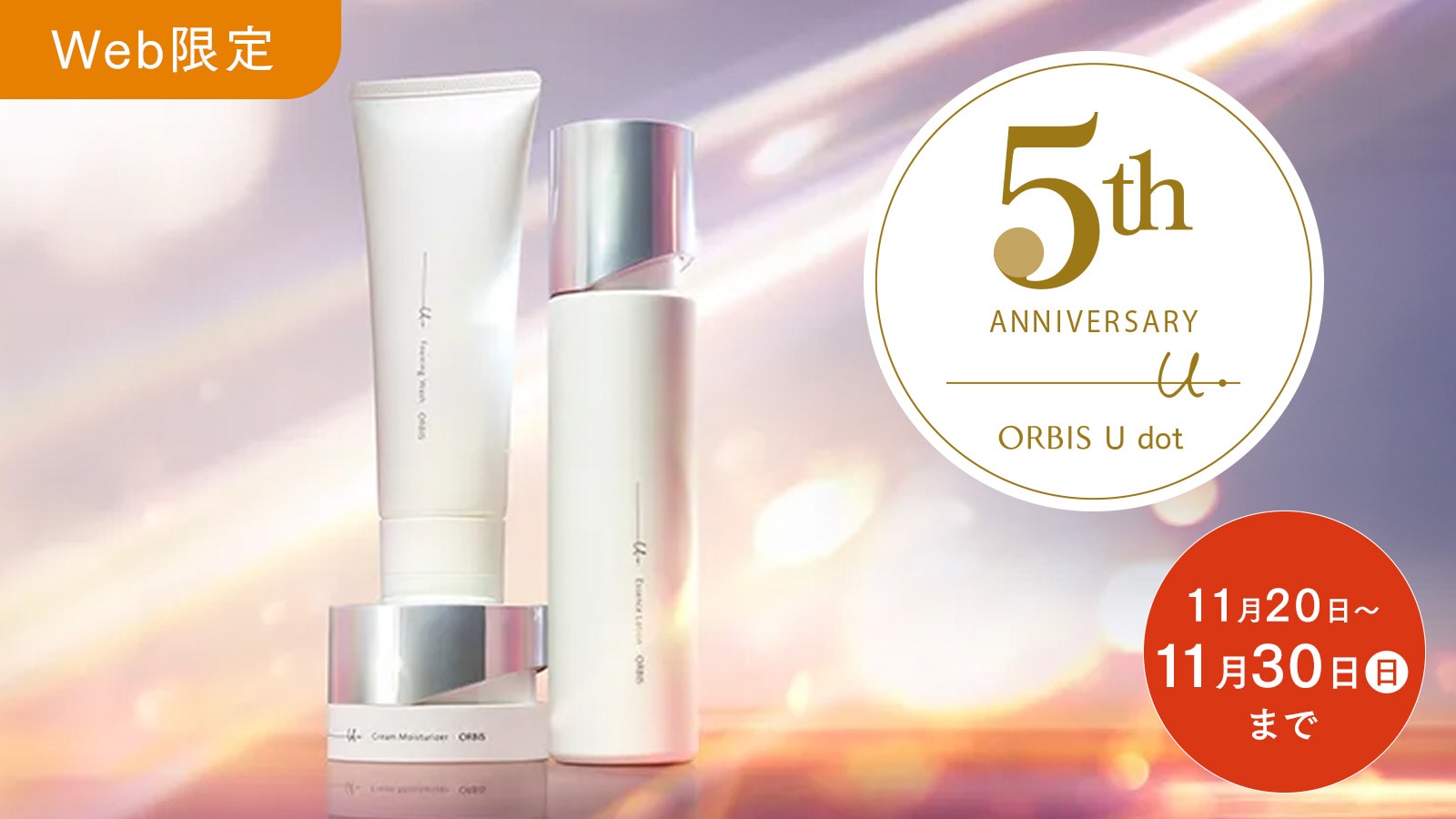 オルビスが誇る“最高峰*”エイジングケアシリーズである「オルビスユー ドット」の誕生5周年を記念して特別記事を公開!記事にちなんだクイズを出題します。正解者の中から抽選で100名様にプレゼントも!ぜひ奮ってご参加ください♪