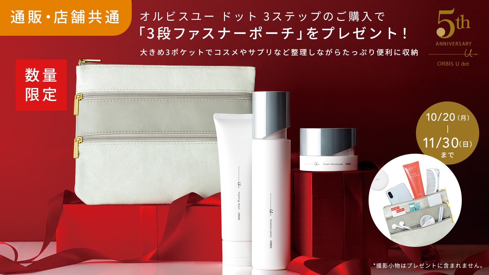 オルビスユー ドット 3ステップのご購入で「3段ファスナーポーチ」を