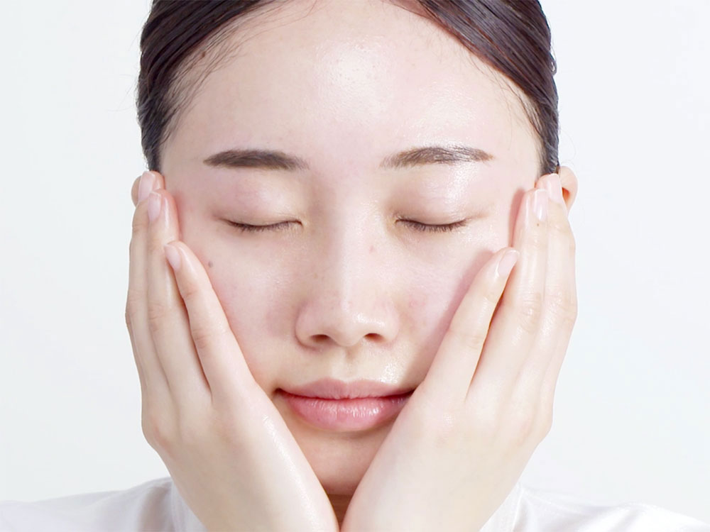 手のひら全体を使って肌を優しくおさえるようになじませます。