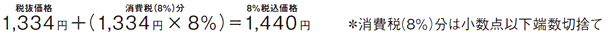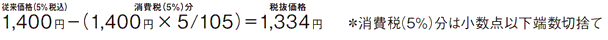 現在の5%税込価格から税抜価格※を算出し(以下1.)、この税抜価格に8%の消費税を適用(以下2.)させていただきます。