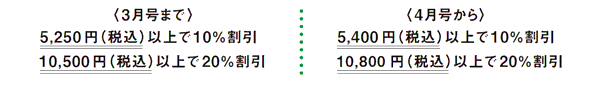 おまとめ買いの基準額(税抜)および割引率に変更はございません。