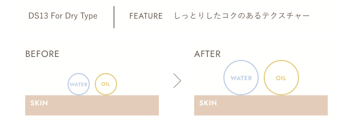 水分と油分のバランスがとれた肌タイプですが、季節や体調によって揺らぐことも。どちらもバランスよく与えて肌状態を整え、健やかに保ちます。