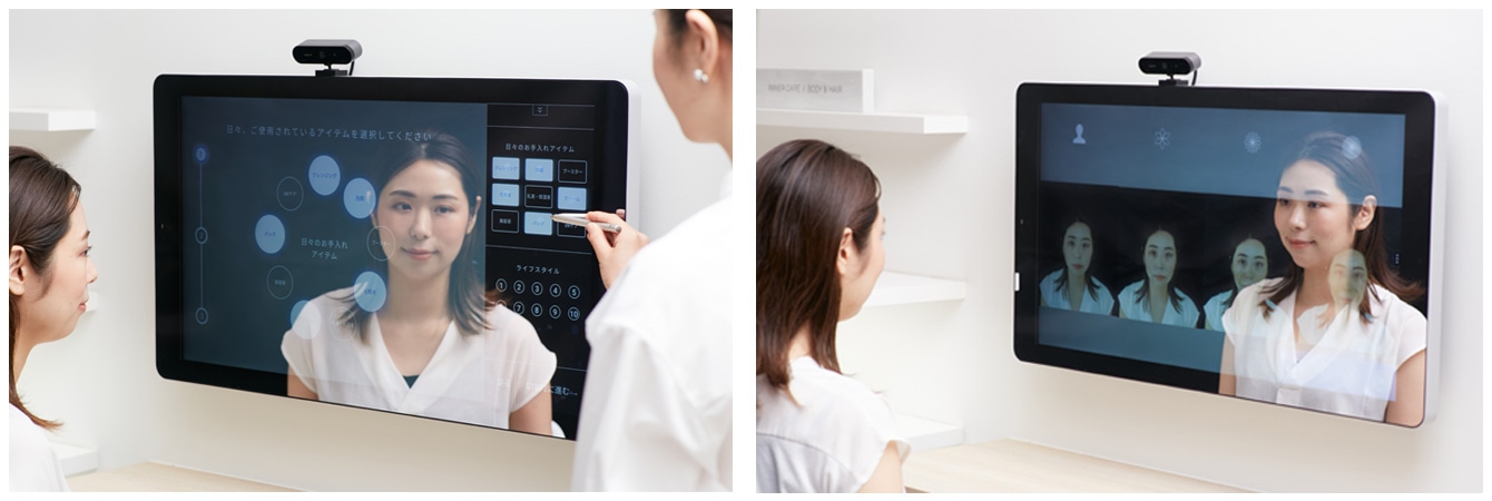 スマートミラーの前に立つだけで、あなたの現在の肌スコアを測定。さらに、AI(人工知能)がお手入れや生活習慣からあなたの未来(5・10・20年後)の顔立ちを予測! これから深くなる肌悩みが一目瞭然に。その結果をもとに、ビューティーアドバイザーが必要なお手入れ方法やおすすめアイテムをご案内いたします。