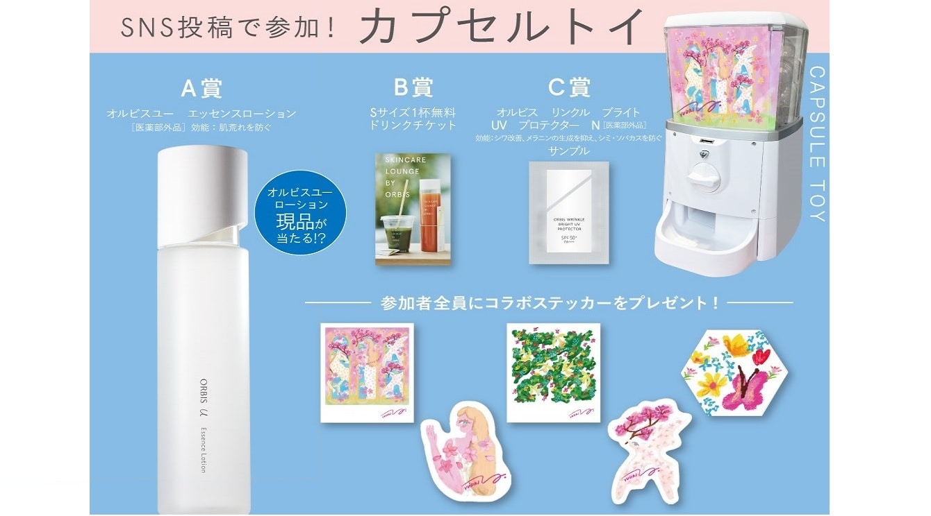 また、ご来場いただきイベントの様子を SNS で発信してくださった方限定で、オルビスの商品や YUUKI さんデザインのステッカーが当たるカプセルトイを実施いたします。