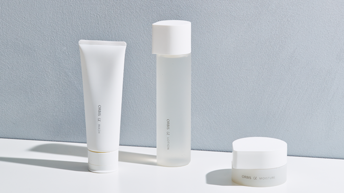 見た目や肌年齢の印象で大切なのは、「頬」の高さとツヤ。オルビスユーシリーズを中心に、肌の中に水を巡らせて*うるおいのある肌に導きます。