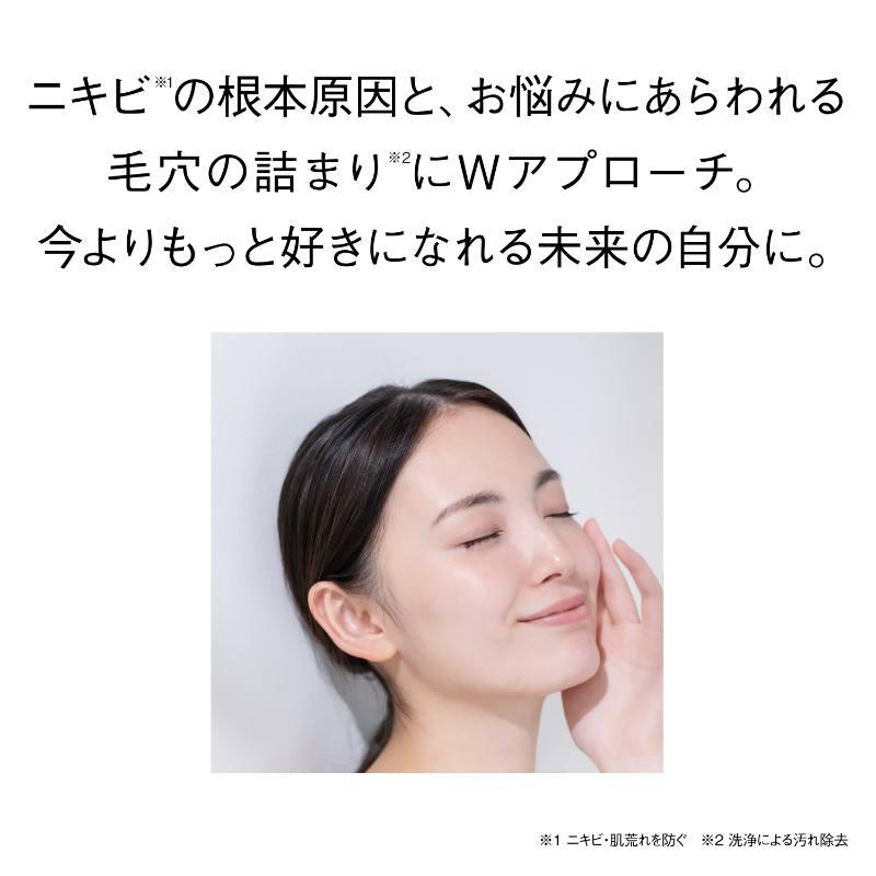 くり返しニキビの根本原因「肌のバリア機能の低下」と、肌悩み「毛穴の目立ち」の両方にWでアプローチする、薬用ニキビ対策スキンケアシリーズです。
