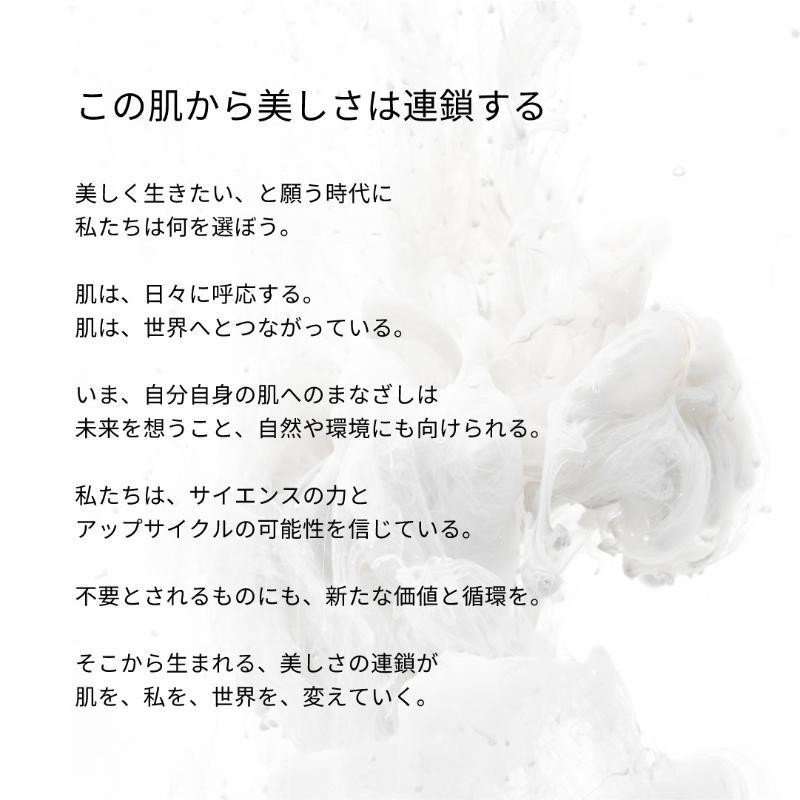 本来は廃棄されるはずだった原料や資源に新たな価値を見出し、生まれ変わらせます。不要とされるものを分解し、再構成。新しいパワーを引き出し、肌にそのエネルギーを還元します。