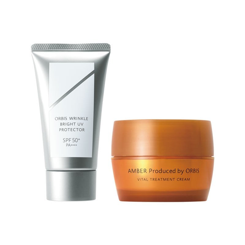「オルビス リンクルブライトUVプロテクター N+オルビスアンバー ヴァイタルトリートメントクリームセット」は、大人世代のエイジングケア(*)ブランドのオールインワンクリームと、リニューアルしたばかりの高機能日焼け止めの組み合わせ。本格的なエイジングケアで、お母さんにご自愛のひとときを。