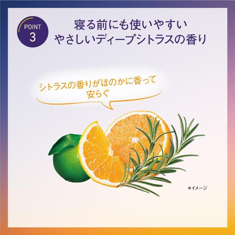 シトラスやハーブをはじめとする16種類の精油*をブレンドし、深呼吸したくなるような深いシトラスの香りに