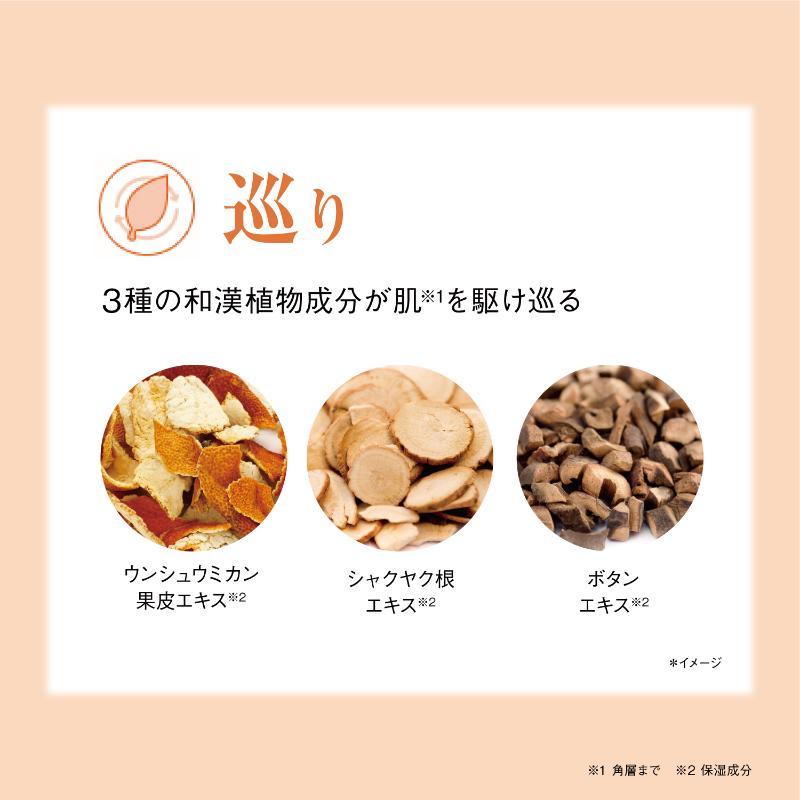 ●ウンシュウミカン果皮エキス=保湿成分 ●シャクヤク根エキス=保湿成分 ●ボタンエキス=保湿成分