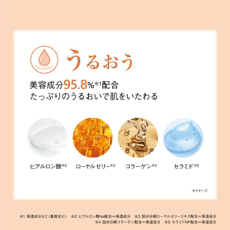 ●セラミド*3=保湿成分 ●高保湿ローヤルゼリー*4=保湿成分 ●高浸透コラーゲン*5=保湿成分