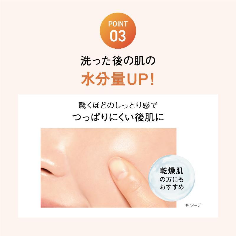 95.8%が美容成分(*4)だから後肌はしっとり。毛穴の目立ち(*5)にくい透明素肌(*6)に洗い上げます。