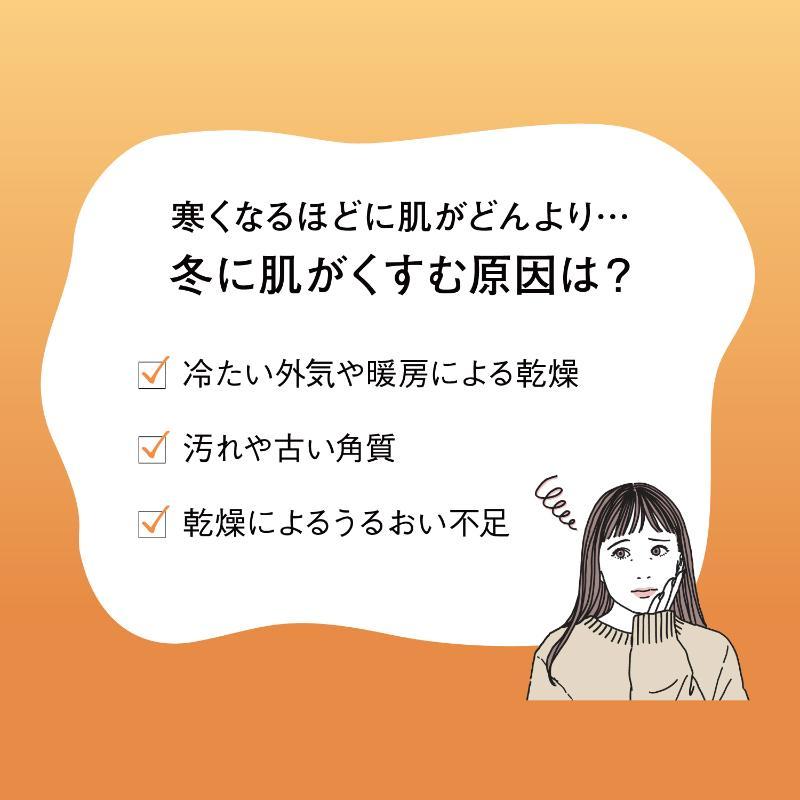 寒くなるほどに肌がどんより… 冬に肌がくすむ原因は? 冷たい外気や暖房による乾燥 汚れや古い角質 乾燥による潤い不足