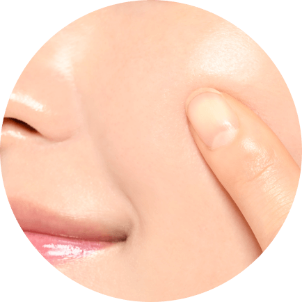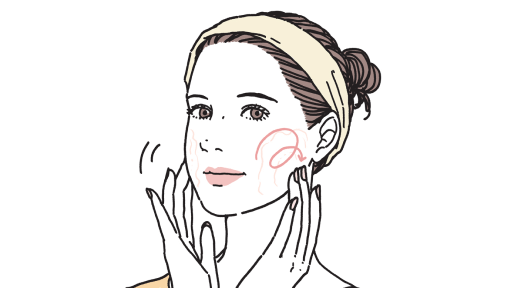 頬やおでこは、内側から外側に向かって大きく円を描きながらなじませる