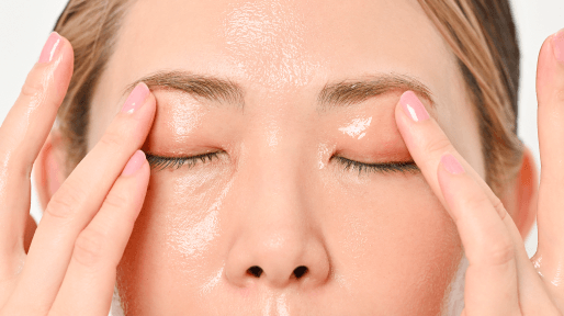 最後に、目頭から目尻に向かって薬指で優しくスライドさせ血行を促す。
