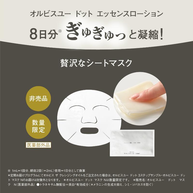 * 定期お届けプログラムにてオルビス ザ クレンジングオイルをご注文された場合は、オルビスユー ドット 3ステップサンプル・オルビスユー ドット マスクのお届けは対象外となります。