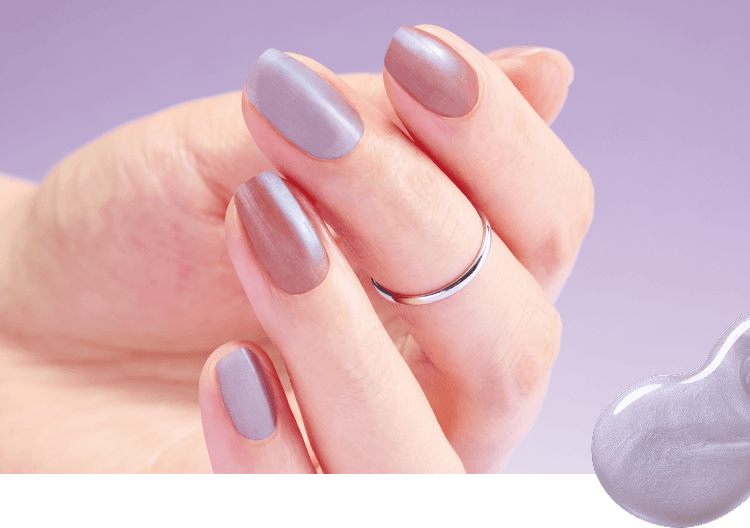 細かなパールの輝きが、上品で洗練された印象の指先に。シアーな発色で塗りムラになりにくいのもポイント!