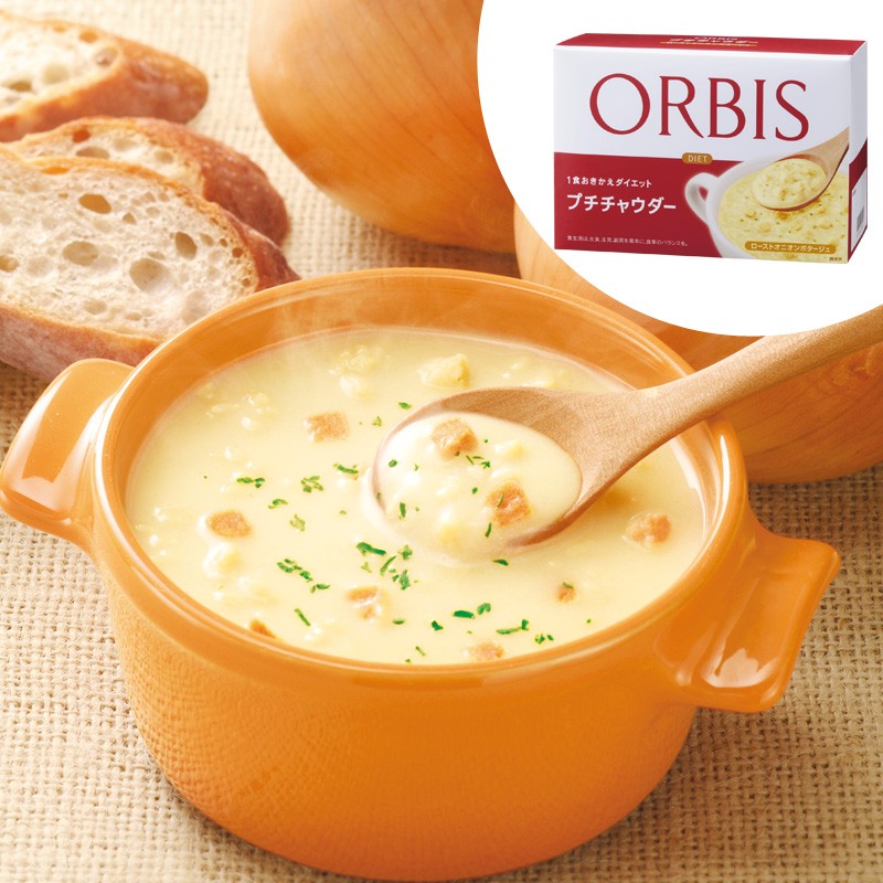 - 「プチチャウダー」は1食約120kcal。1日3食のうち1食を「プチチャウダー」におきかえるだけで、簡単に摂取カロリーをカットできます。あとの2食はいつもの食事でOK! 具だくさんでお腹にたまりやすいチャウダーなので、無理なく手軽に続けられます。