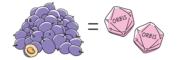- 「五訂増捕日本食品標準成分表2010」より、プルーン(乾)1個(10.6g)として可食部換算した場合。