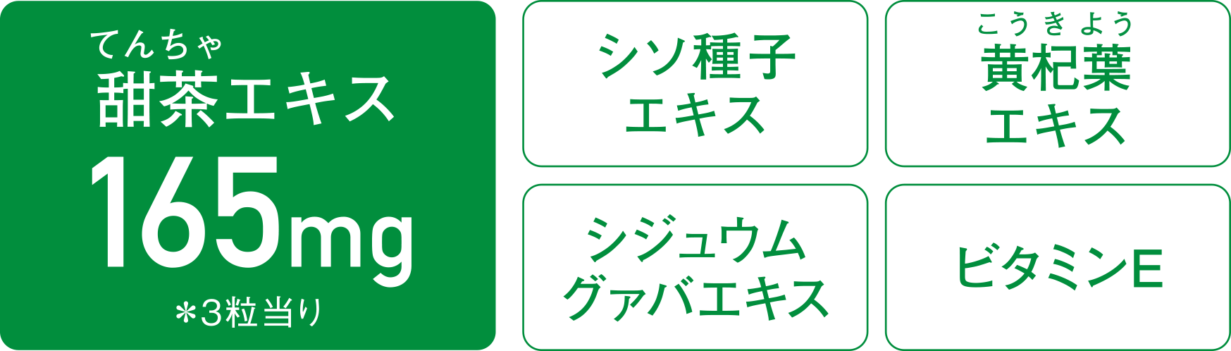甜茶(てんちゃ)エキス165mg(※3粒当り)[シソ種子エキス/黄杞葉エキス/シジュウムグァバエキス/ビタミンE]