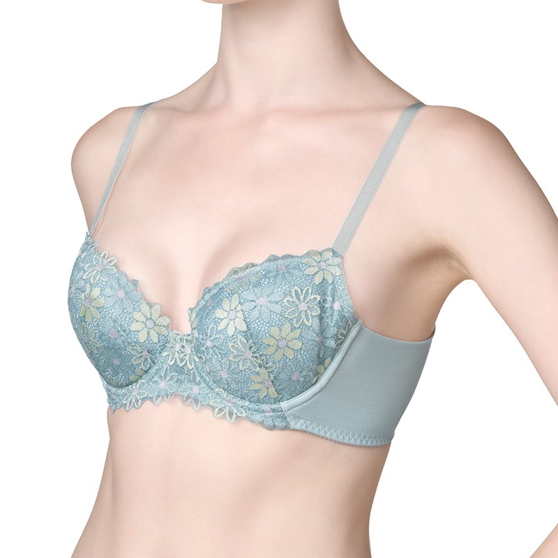 - サイドのボーンがないのに、美しいシルエットへ。4枚接ぎカップと脇の伸び止め素材で段差レス!アウターに浮き出る、ぷよぷよの段差をすっきり解消します。
