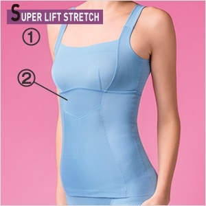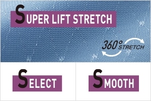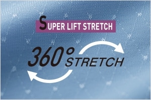 SUPER LIFT STRETCH:強くおさえるのではなく、やさしく面で包み込む! 360 °ストレッチする素材が体の動きにシンクロし、やわらかいお肉を受け止めて逃しません。