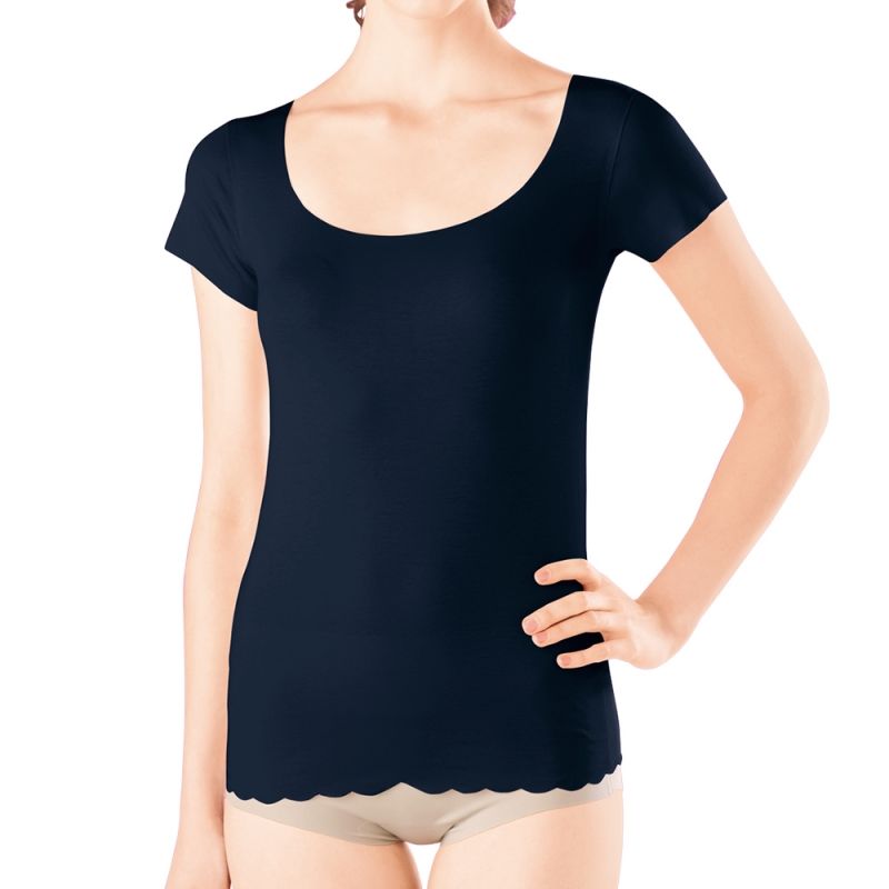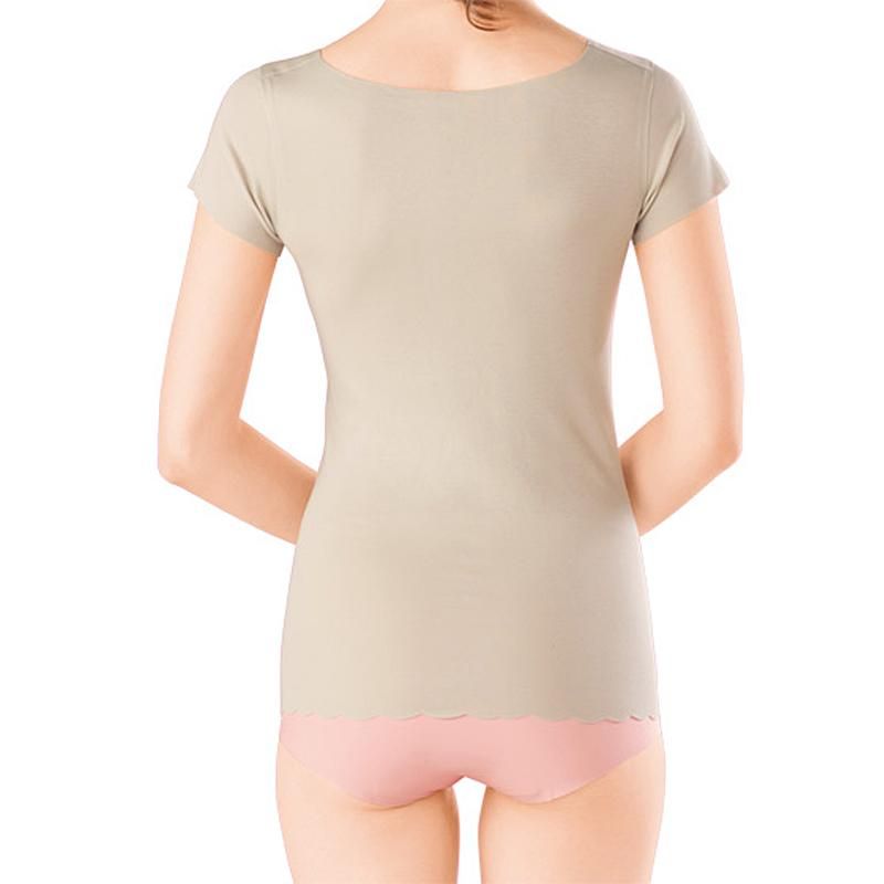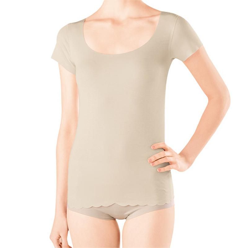 - 肩も襟も縫い目ゼロ。二の腕はピチピチしないから安心。短めの袖丈で、多彩なアウターに対応する半袖です。